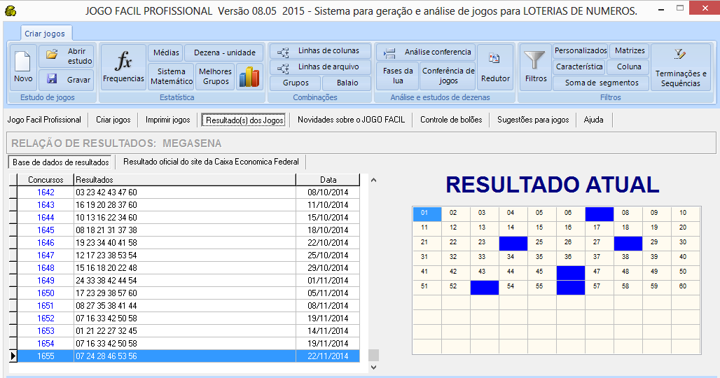 A nova versão do software JOGO FÁCIL ja esta sendo comercializada, estamos otimizando alguns processos e implementando novos recursos, se você tem alguma sugestão legal envie um e-mail para O endereço de e-mail address está sendo protegido de spambots. Você precisa ativar o JavaScript enabled para vê-lo. e estaremos analisando. Dentre alguns recursos que ja foram alterados agora você terá no software um gerador de jogos que irá gerar o jogo de acordo com as suas informações. A seguir uma tela demostrando o processo.